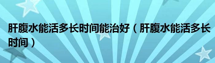 大家好,乐天来为大家解答以下的问题,肝腹水能活多长时间能治好,肝腹水能活多长时间很多人还不知道,现在让我们一起来看看吧!