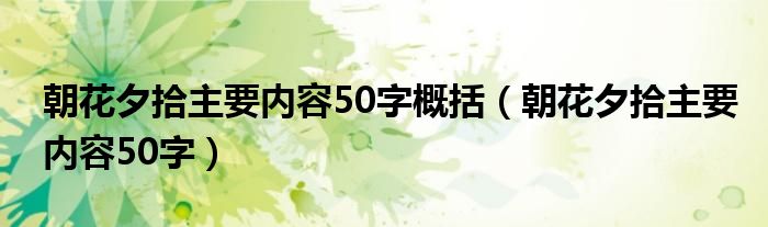 大家好,我是小科,我来为大家解答以上问题。朝花夕拾主要内容50字概括,朝花夕拾主要内容50字很多人还不知道,现在让我们一起来看看吧!