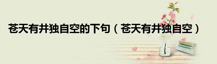 大家好,我是小科,我来为大家解答以上问题。苍天有井独自空的下句,苍天有井独自空很多人还不知道,现在让我们一起来看看吧!