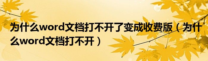 大家好,来宝来为大家解答以下问题,为什么word文档打不开了变成收费版,为什么word文档打不开很多人还不知道,今天让我们一起来看看吧!