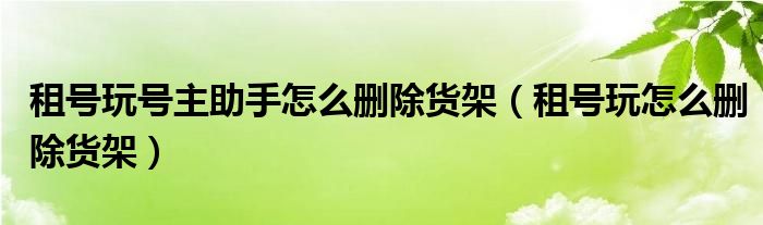 大家好,我是小科,我来为大家解答以上问题。租号玩号主助手怎么删除货架,租号玩怎么删除货架很多人还不知道,现在让我们一起来看看吧!