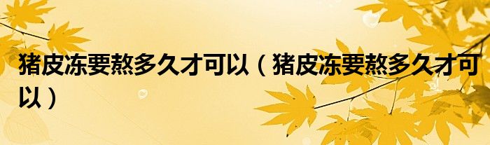 大家好,小夏来为大家讲解下。猪皮冻要熬多久才可以,猪皮冻要熬多久才可以很多人还不知道,现在让我们一起来看看吧!