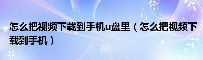 怎么把视频下载到手机u盘里(怎么把视频下载到手机)