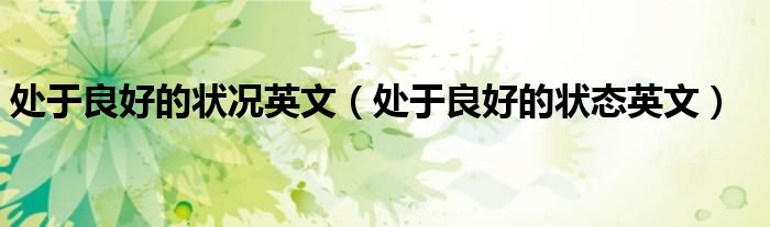 大家好,小联来为大家解答以上的问题。处于良好的状况英文,处于良好的状态英文这个很多人还不知道,现在让我们一起来看看吧!