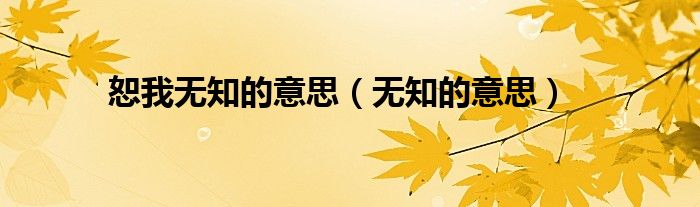 大家好,我是小科,我来为大家解答以上问题。恕我无知的意思,无知的意思很多人还不知道,现在让我们一起来看看吧!