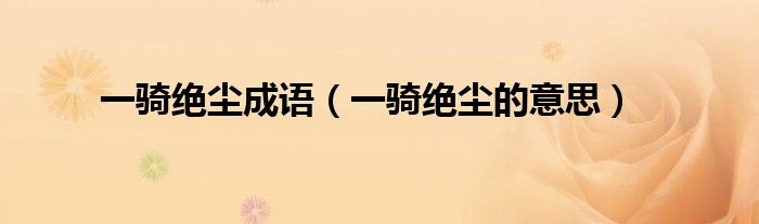 大家好,小夏来为大家讲解下。一骑绝尘成语,一骑绝尘的意思很多人还不知道,现在让我们一起来看看吧!
