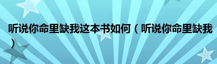 大家好,我是小科,我来为大家解答以上问题。听说你命里缺我这本书如何,听说你命里缺我很多人还不知道,现在让我们一起来看看吧!