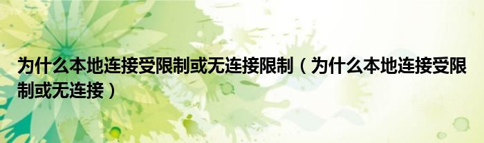 大家好,来宝来为大家解答以下问题,为什么本地连接受限制或无连接限制,为什么本地连接受限制或无连接很多人还不知道,今天让我们一起来看看吧!