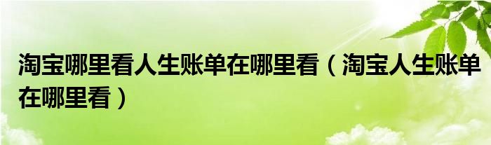 淘宝哪里看人生账单在哪里看(淘宝人生账单在哪里看)