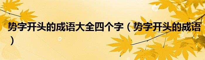 大家好,小晋来为大家解答以下问题,关于势字开头的成语大全四个字,势字开头的成语很多人还不知道,今天让我们一起来看看吧!