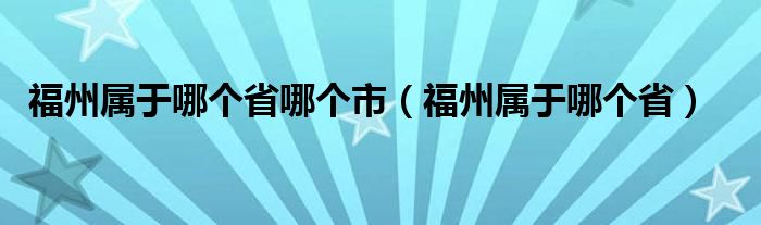 福州属于哪个省哪个市(福州属于哪个省)