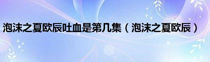 大家好,小晋来为大家解答以下问题,关于泡沫之夏欧辰吐血是第几集,泡沫之夏欧辰很多人还不知道,今天让我们一起来看看吧!