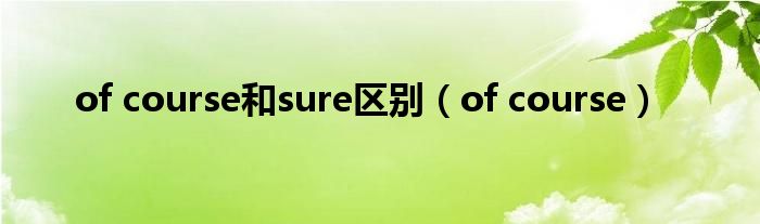 关于of course和sure区别,of course这个很多人还不知道,今天菲菲来为大家解答以上的问题,现在让我们一起来看看吧!