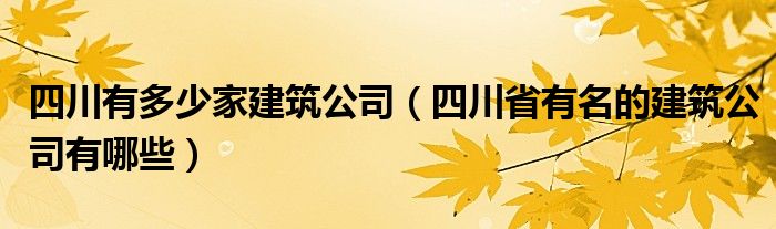 关于四川有多少家建筑公司,四川省有名的建筑公司有哪些这个很多人还不知道,今天菲菲来为大家解答以上的问题,现在让我们一起来看看吧!