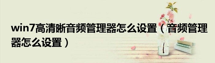 大家好,来宝来为大家解答以下问题,win7高清晰音频管理器怎么设置,音频管理器怎么设置很多人还不知道,今天让我们一起来看看吧!
