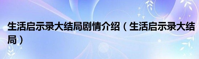 生活启示录大结局剧情介绍(生活启示录大结局)