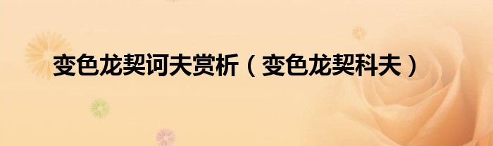 关于变色龙契诃夫赏析,变色龙契科夫这个很多人还不知道,今天菲菲来为大家解答以上的问题,现在让我们一起来看看吧!