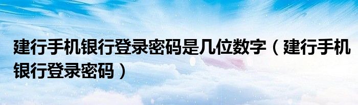 大家好,来宝来为大家解答以下问题,建行手机银行登录密码是几位数字,建行手机银行登录密码很多人还不知道,今天让我们一起来看看吧!