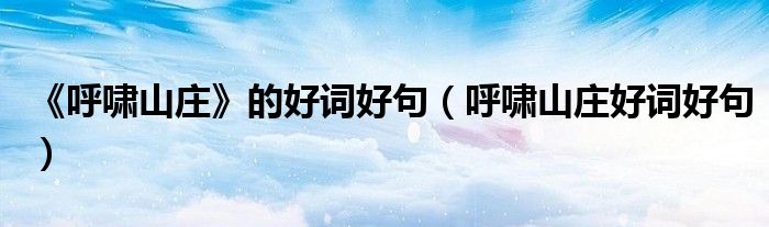 关于《呼啸山庄》的好词好句,呼啸山庄好词好句这个很多人还不知道,今天菲菲来为大家解答以上的问题,现在让我们一起来看看吧!