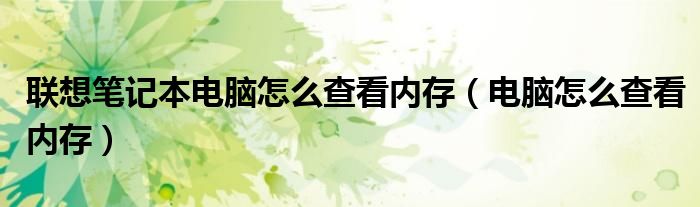 关于联想笔记本电脑怎么查看内存,电脑怎么查看内存这个很多人还不知道,今天菲菲来为大家解答以上的问题,现在让我们一起来看看吧!