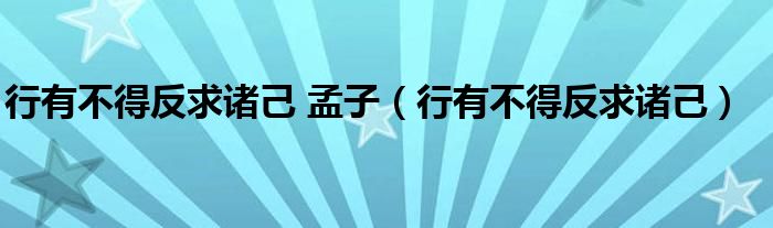 关于行有不得反求诸己 孟子,行有不得反求诸己这个很多人还不知道,今天菲菲来为大家解答以上的问题,现在让我们一起来看看吧!