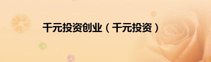关于千元投资创业,千元投资这个很多人还不知道,今天菲菲来为大家解答以上的问题,现在让我们一起来看看吧!
