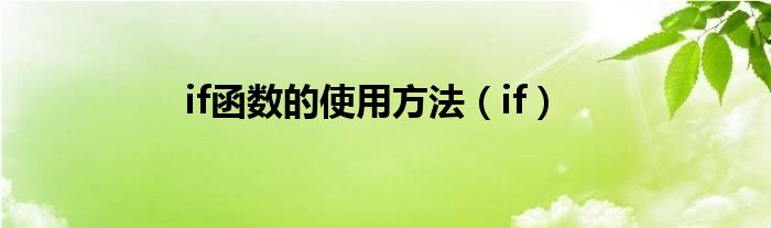 if函数的使用方法(if)