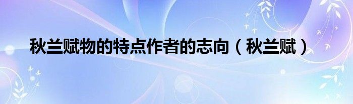 秋兰赋物的特点作者的志向(秋兰赋)