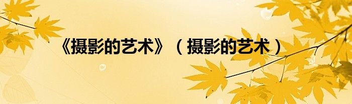 关于《摄影的艺术》,摄影的艺术这个很多人还不知道,今天菲菲来为大家解答以上的问题,现在让我们一起来看看吧!