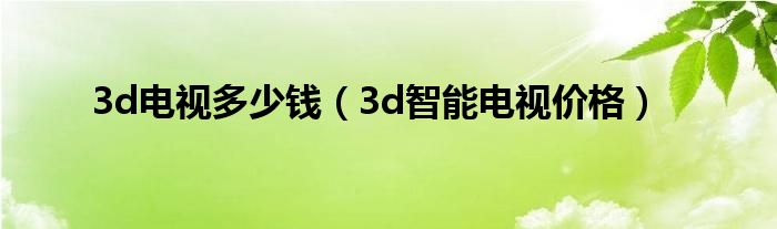 1、3D电影带来的震撼视觉效果使得普通的2D视频画面不再满足人们的需求。因此,3D智能电视的出现,不仅满足了人们的视觉需求,给人们带来了极致的视觉享受,也实现了足不出户就能在家观看3D视频。边肖今天收集的知识介绍了几款3D智能电视的性能和报价,帮助你了解更多。