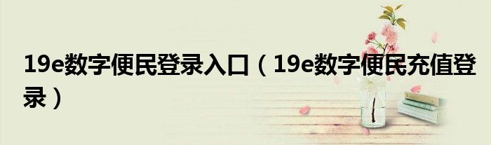 关于19e数字便民登录入口,19e数字便民充值登录这个很多人还不知道,今天菲菲来为大家解答以上的问题,现在让我们一起来看看吧!