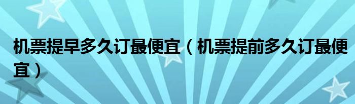 关于机票提早多久订最便宜,机票提前多久订最便宜这个很多人还不知道,今天菲菲来为大家解答以上的问题,现在让我们一起来看看吧!