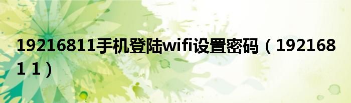 19216811手机登陆wifi设置密码,192168 1 1这个很多人还不知道,小飞来为大家解答以上的问题。现在让我们一起来看看吧!