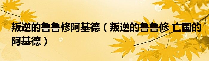 叛逆的鲁鲁修阿基德,叛逆的鲁鲁修 亡国的阿基德这个很多人还不知道,小飞来为大家解答以上的问题。现在让我们一起来看看吧!