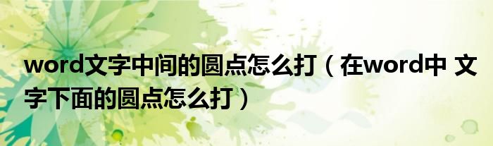 word文字中间的圆点怎么打(在word中文字下面的圆点怎么打)