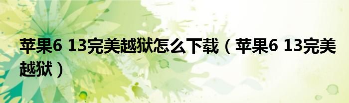 大家好,来宝来为大家解答以下问题,苹果6 13完美越狱怎么下载,苹果6 13完美越狱很多人还不知道,今天让我们一起来看看吧!