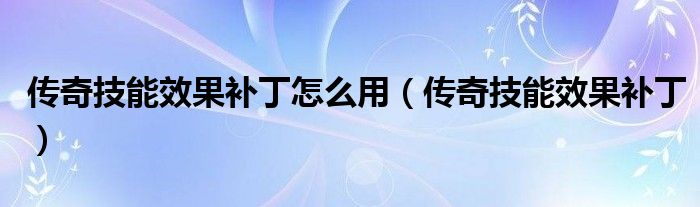 关于传奇技能效果补丁怎么用,传奇技能效果补丁这个很多人还不知道,今天菲菲来为大家解答以上的问题,现在让我们一起来看看吧!