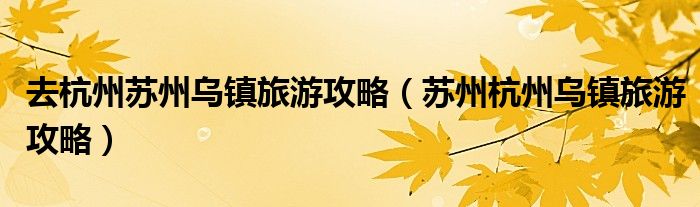 关于去杭州苏州乌镇旅游攻略,苏州杭州乌镇旅游攻略这个很多人还不知道,今天菲菲来为大家解答以上的问题,现在让我们一起来看看吧!