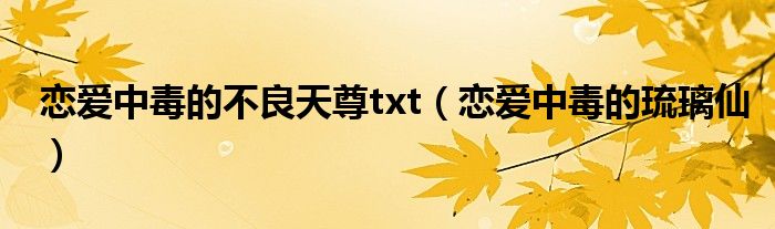 恋爱中毒的不良天尊txt,恋爱中毒的琉璃仙这个很多人还不知道,小飞来为大家解答以上的问题。现在让我们一起来看看吧!