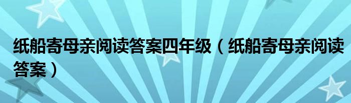 关于纸船寄母亲阅读答案四年级,纸船寄母亲阅读答案这个很多人还不知道,今天菲菲来为大家解答以上的问题,现在让我们一起来看看吧!