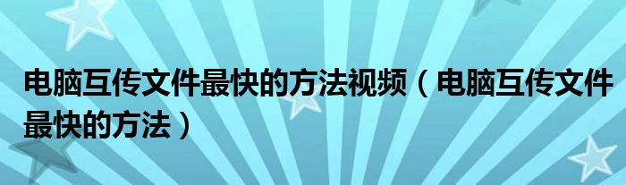 关于电脑互传文件最快的方法视频,电脑互传文件最快的方法这个很多人还不知道,今天菲菲来为大家解答以上的问题,现在让我们一起来看看吧!