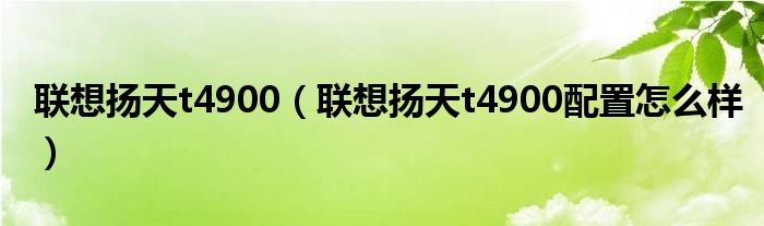 1,联想扬天t4900配置怎么样:联想扬天t4900是一款停产于2009年的产品,目前价格不会超过50元。 完全没意义的产品。产品类型:商用台式机机箱类型:立式CPU 频率:2.6GHz核心/线程数:双核内存类型:1G-DDRII硬盘容量:160GB显卡类型:集成显卡