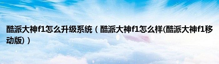 大家好,小常来为大家解答以上问题。酷派大神f1怎么升级系统,酷派大神f1怎么样(酷派大神f1移动版)很多人还不知道,现在让我们一起来看看吧!