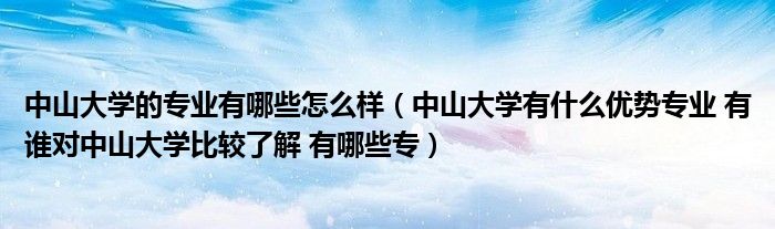 关于中山大学的专业有哪些怎么样,中山大学有什么优势专业 有谁对中山大学比较了解 有哪些专这个很多人还不知道,今天菲菲来为大家解答以上的问题,现在让我们一起来看看吧!