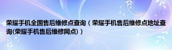 大家好,小常来为大家解答以上问题。荣耀手机全国售后维修点查询,荣耀手机售后维修点地址查询(荣耀手机售后维修网点)很多人还不知道,现在让我们一起来看看吧!