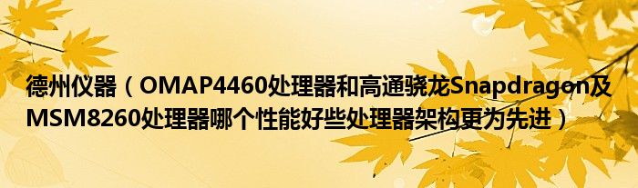 大家好,小常来为大家解答以上问题。德州仪器,OMAP4460处理器和高通骁龙Snapdragon及MSM8260处理器哪个性能好些处理器架构更为先进很多人还不知道,现在让我们一起来看看吧!