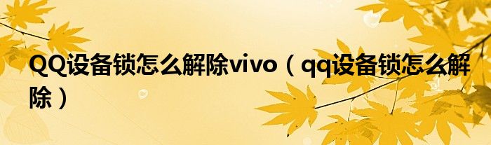 QQ设备锁怎么解除vivo(qq设备锁怎么解除)