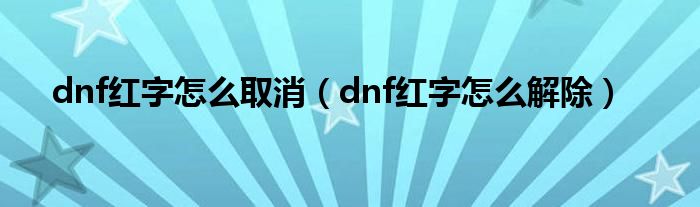 dnf红字怎么取消(dnf红字怎么解除)