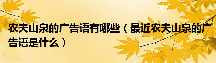 关于农夫山泉的广告语有哪些,最近农夫山泉的广告语是什么这个很多人还不知道,今天菲菲来为大家解答以上的问题,现在让我们一起来看看吧!