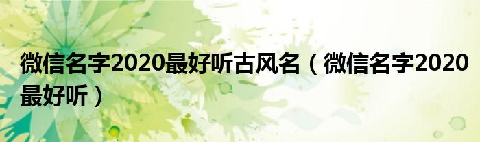 大家好,慧慧来为大家解答以上问题,微信名字2020最好听古风名,微信名字2020最好听很多人还不知道,现在让我们一起来看看吧!